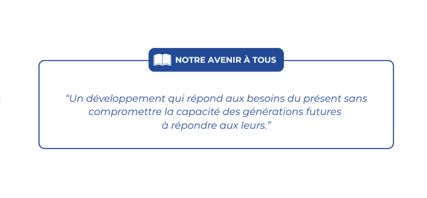 Cette phrase résume une idée essentielle : satisfaire les besoins humains d’aujourd’hui tout en préservant les ressources naturelles et les équilibres écologiques pour demain.